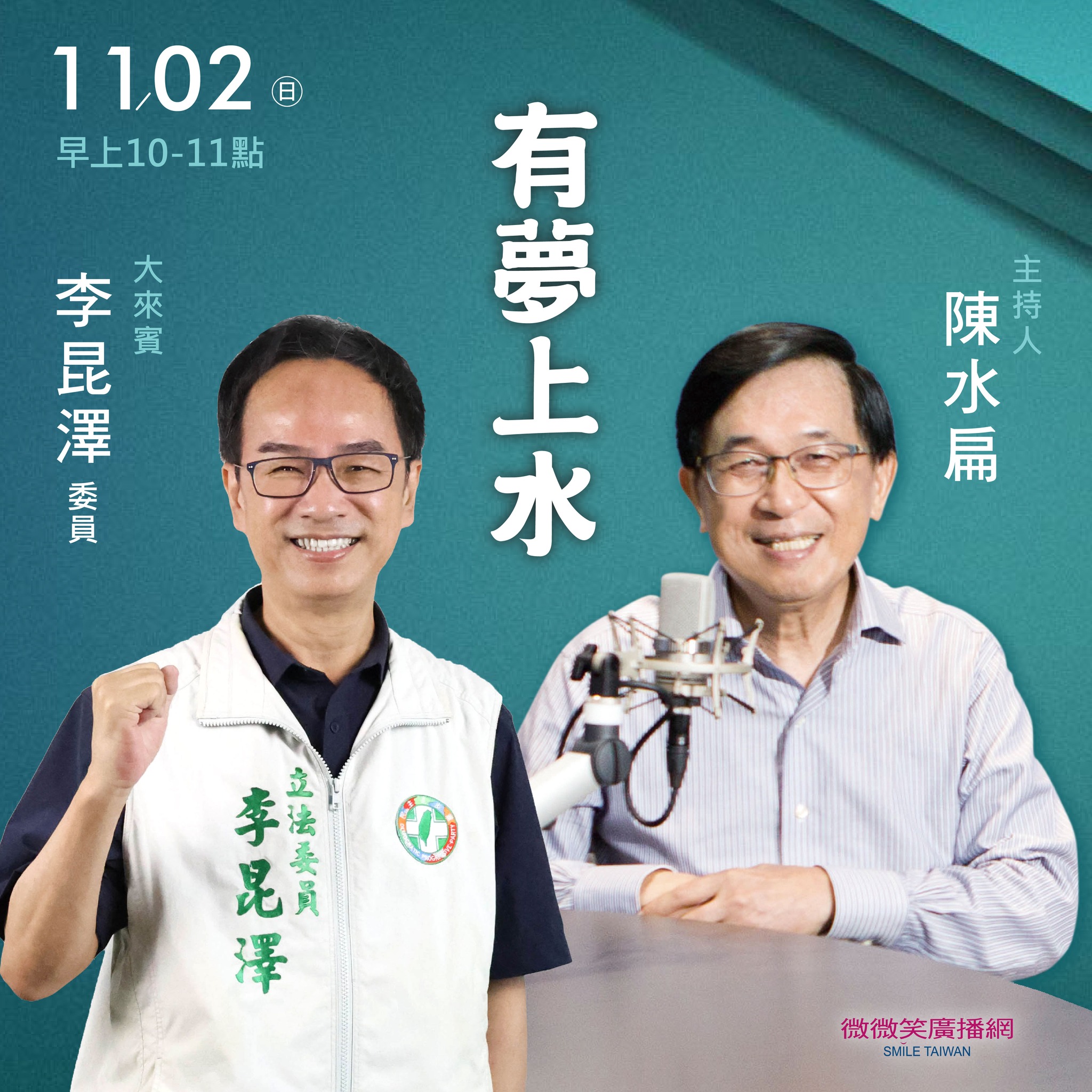 本周 11/02 大來賓 有夢上水 / 李昆澤委員 聽醫師來講 / 陳忠仁醫師 ............... 歡迎下載微微笑廣播網APP ............... 安卓系統請點...