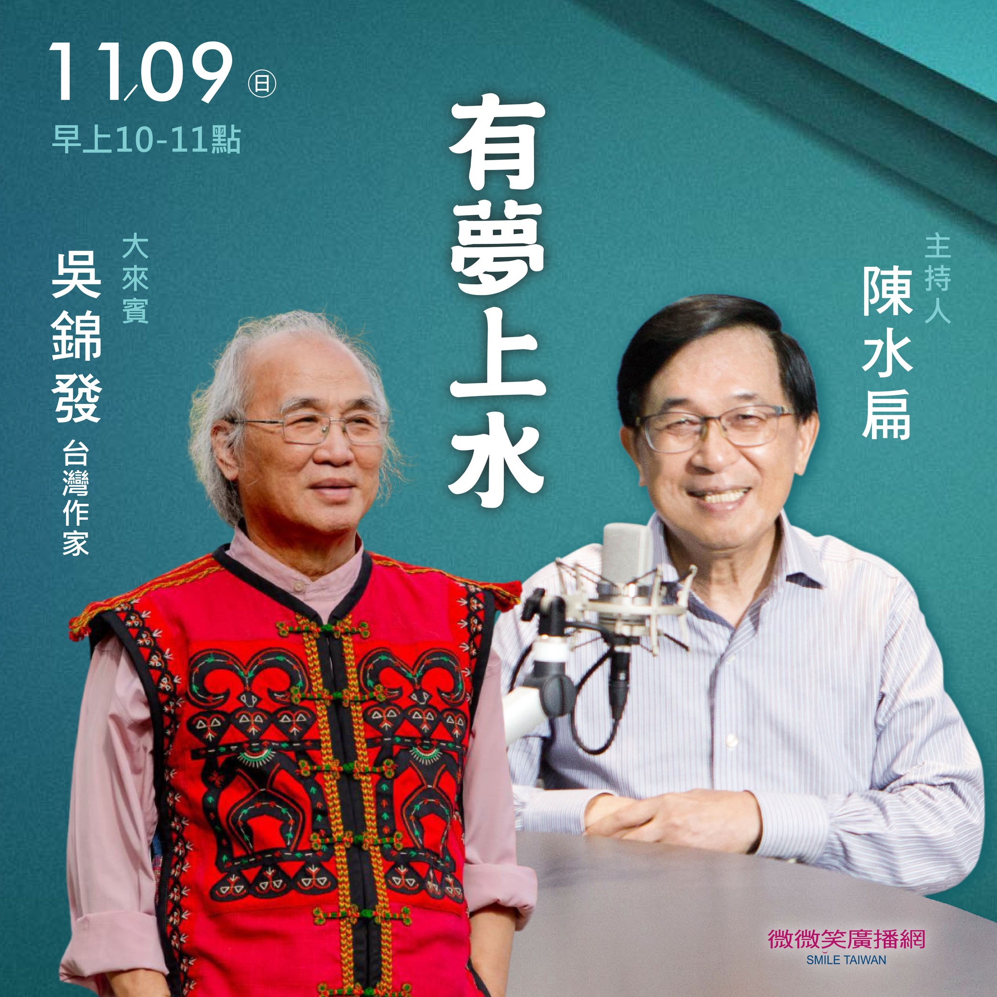 本周 11/09 大來賓 有夢上水 / 吳錦發作家 聽醫師來講 / 陳忠仁醫師 ............... 歡迎下載微微笑廣播網APP ............... 安卓系統請點...