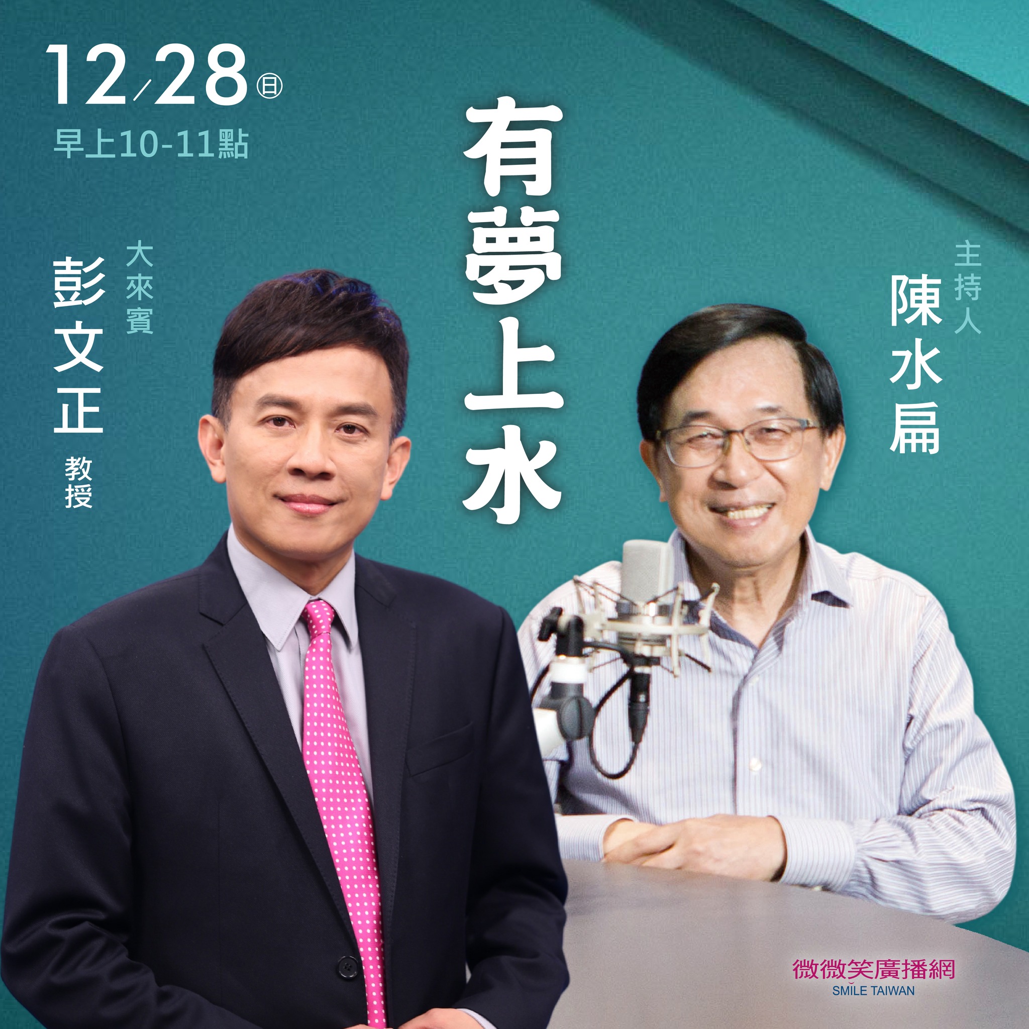 本周 12/28 大來賓 有夢上水 / 彭文正 教授 聽醫師來講 / 陳相國 醫師 ............... 歡迎下載微微笑廣播網APP ............... 安卓系統請點...