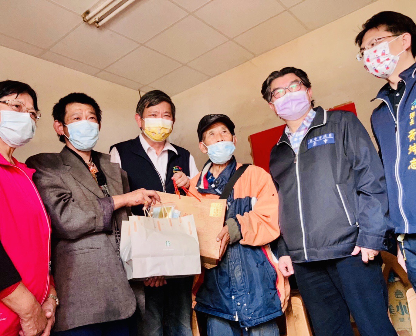 新春在即,台中市政府社會局長彭懷真今(5)日與市議員李中及甘霖基金會執行長林錦雪等人,前往居住於東、南區的獨居長輩及身障者家中致贈春節年菜及糕餅禮盒,向長輩們拜早年,並表達關懷慰問之意。